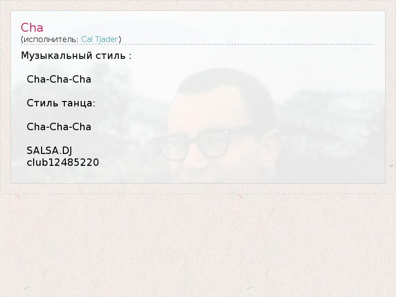 Это интересно:Callen Radcliffe Tjader, Jr. a.k.a. Cal Tjader (July 16, 1925–May 5, 1982) was a Latin jazz musician, though he also explored various other jazz idioms. Unlike other American jazz musicians who experimented with the music from Cuba, the Caribbean, and Latin America, he never abandoned it, performing it until his death.Tjader primarily played the vibraphone. He was also accomplished on the drums, bongos, congas, timpani, and the piano. He worked with numerous musicians from several cultures. He is often linked to the development of Latin Rock and Acid Jazz. Although fusing jazz with Latin music is often categorized as "Latin Jazz" (or, earlier, "Afro-Cuban Jazz"), Tjader's... продолжение