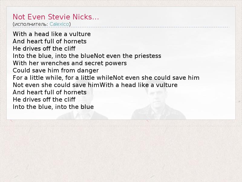 А как ты думаешь, о чем песня "Not Even Stevie Nicks..." ?