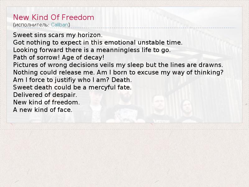 А как ты думаешь, о чем песня "New Kind Of Freedom" ?