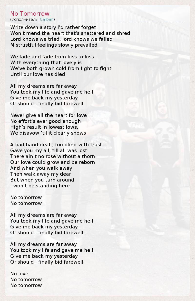 А как ты думаешь, о чем песня "No Tomorrow" ?
