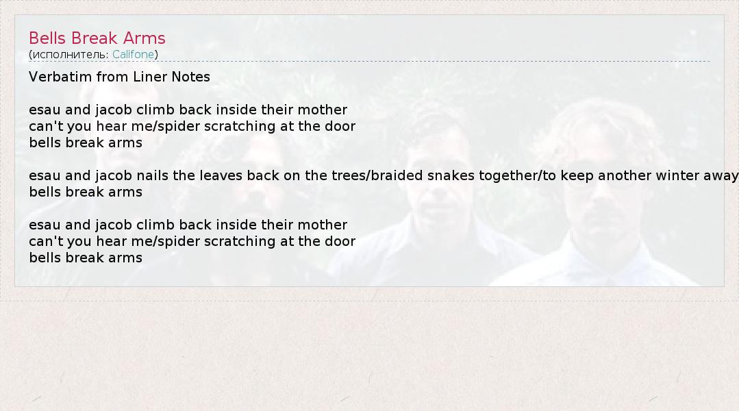 А как ты думаешь, о чем песня "Bells Break Arms" ?