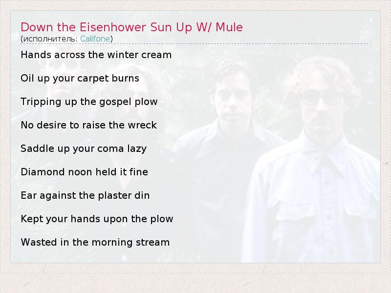 А как ты думаешь, о чем песня "Down the Eisenhower Sun Up W/ Mule" ?