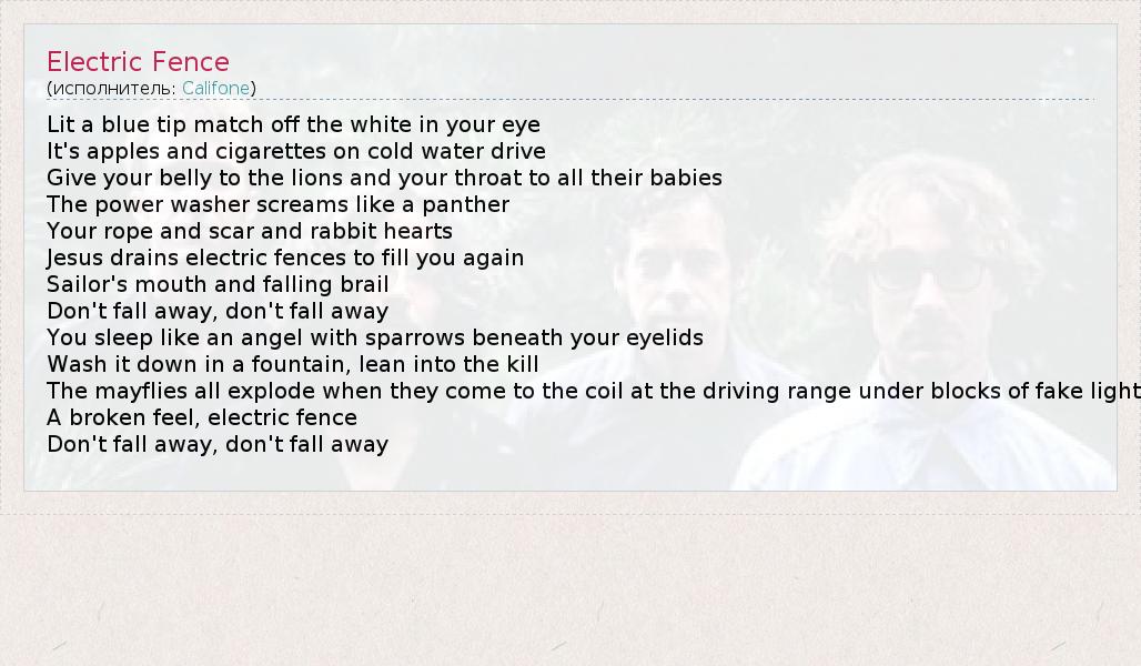 А как ты думаешь, о чем песня "Electric Fence" ?