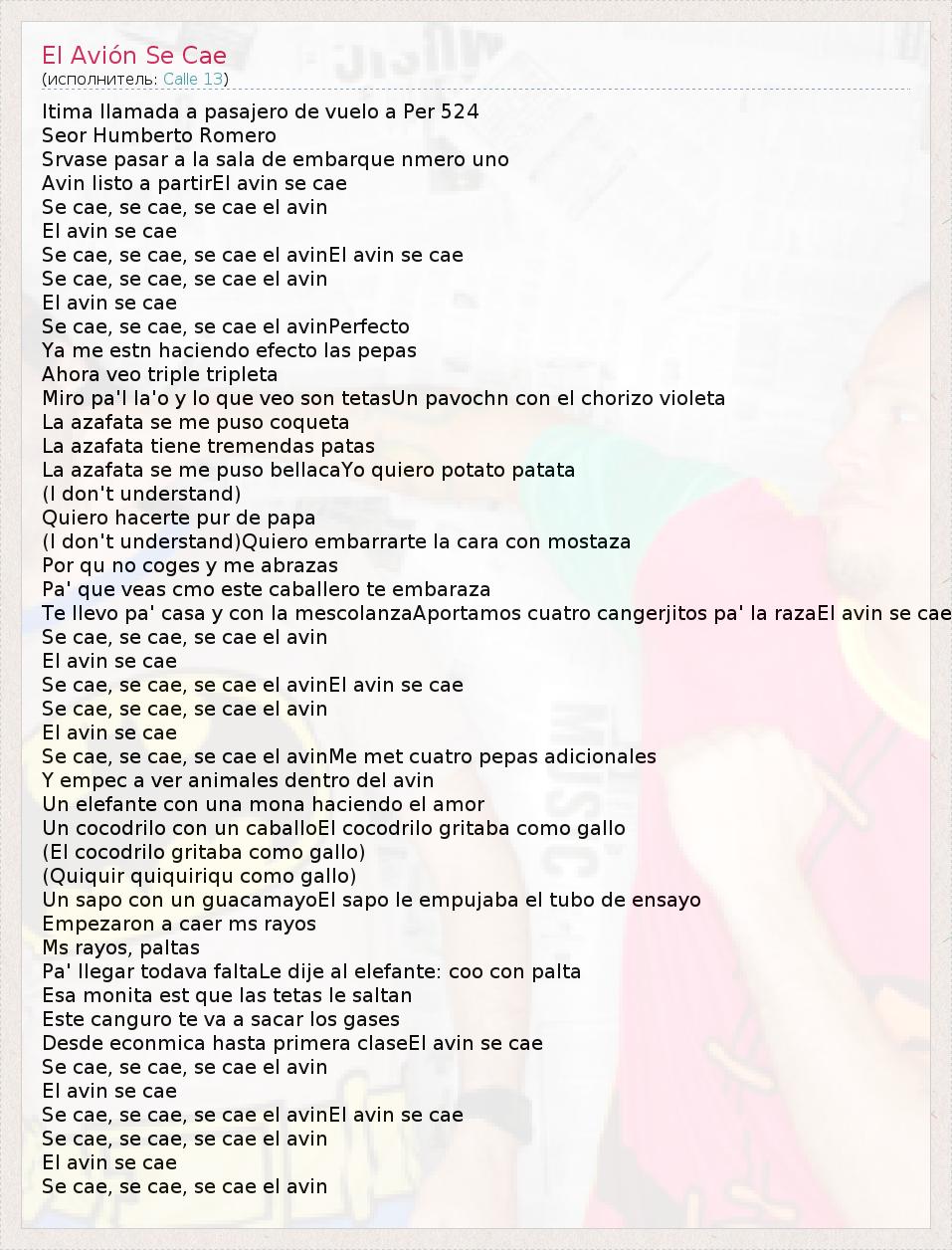 А как ты думаешь, о чем песня "El Avión Se Cae" ?