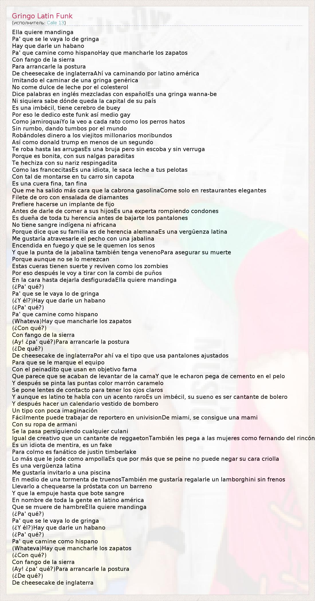 А как ты думаешь, о чем песня "Gringo Latin Funk" ?