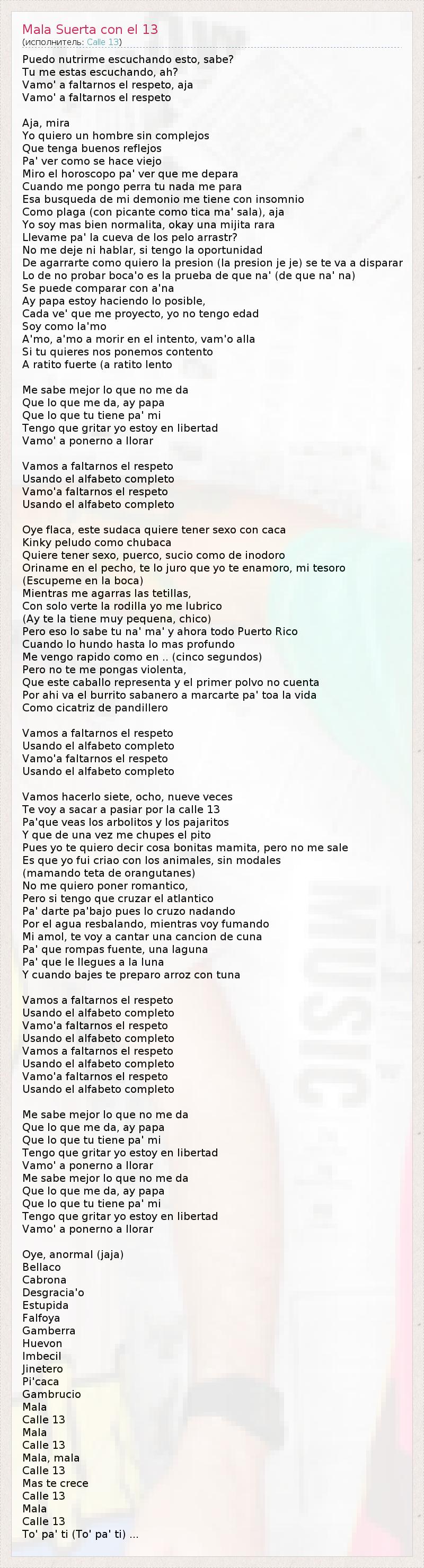 А как ты думаешь, о чем песня "Mala Suerta con el 13" ?