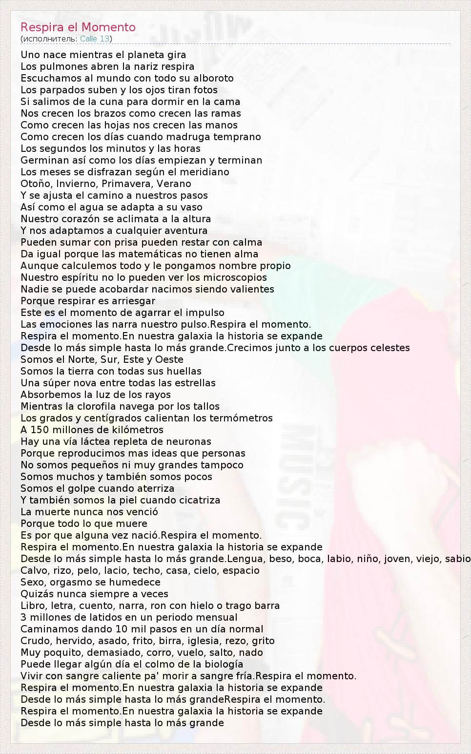 А как ты думаешь, о чем песня "Respira el Momento" ?