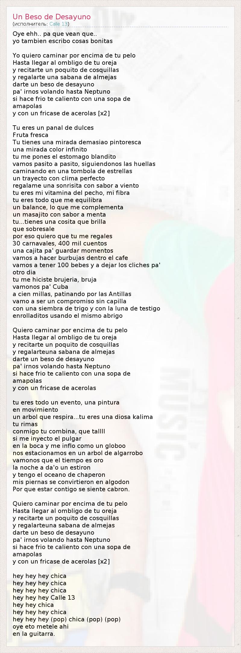 А как ты думаешь, о чем песня "Un Beso de Desayuno" ?