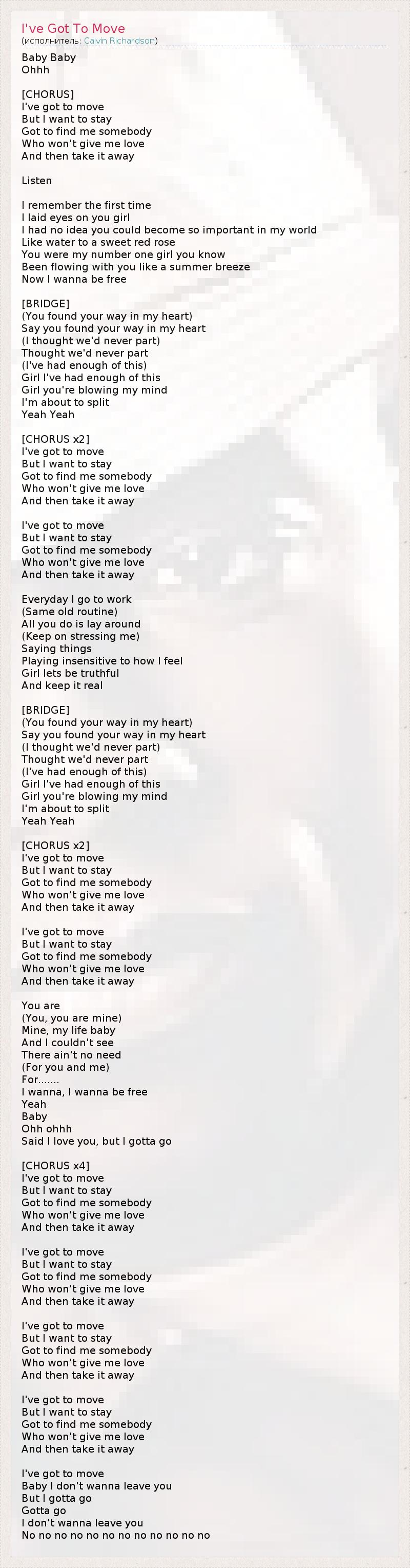 А как ты думаешь, о чем песня "I've Got To Move" ?