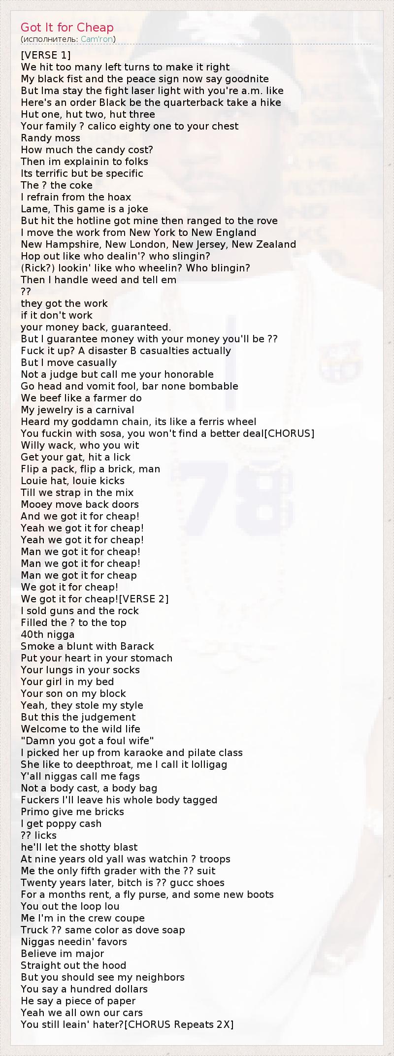 А как ты думаешь, о чем песня "Got It for Cheap" ?