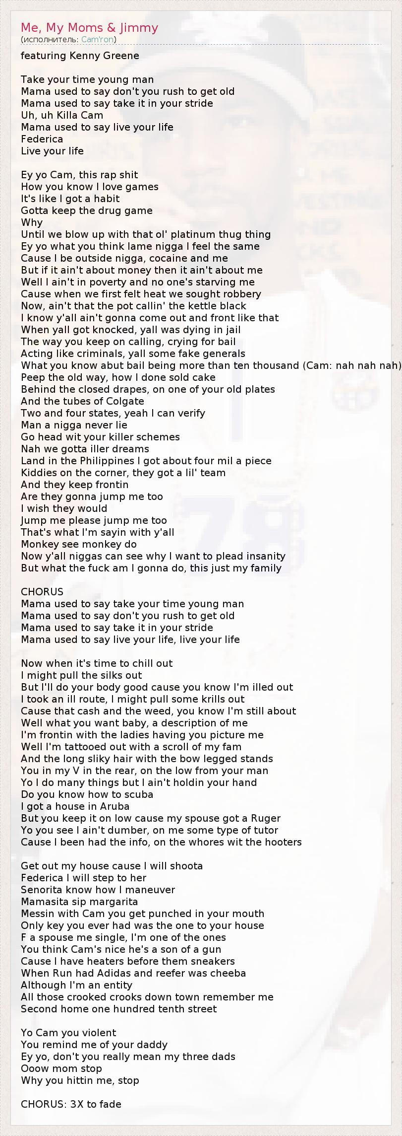 А как ты думаешь, о чем песня "Me, My Moms & Jimmy" ?
