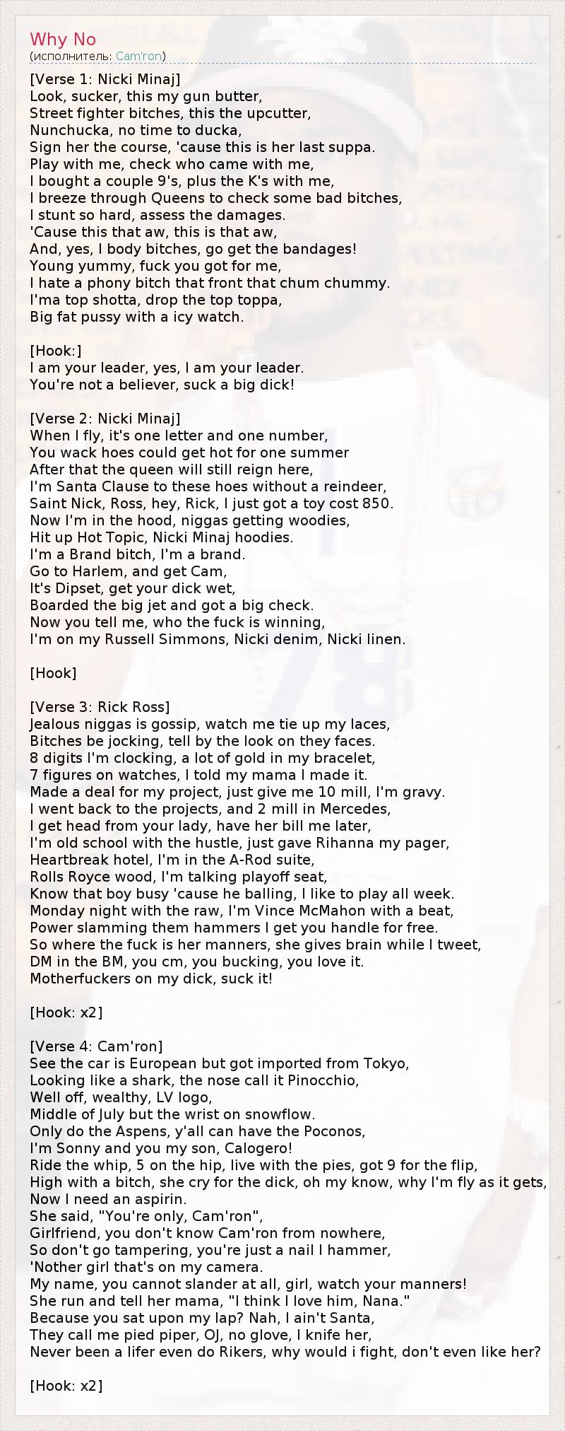 А как ты думаешь, о чем песня "Why No" ?