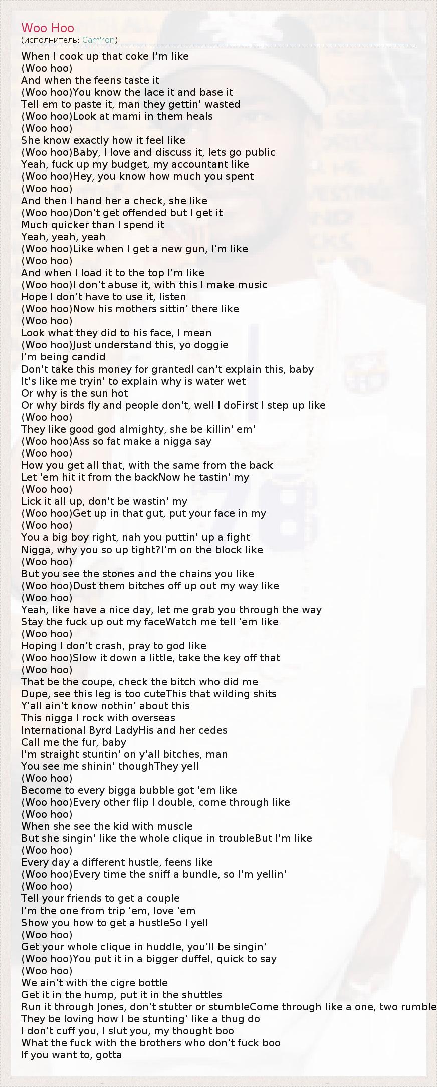 А как ты думаешь, о чем песня "Woo Hoo" ?