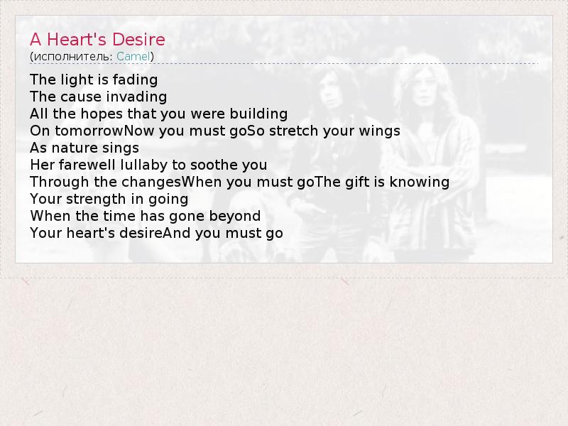 А как ты думаешь, о чем песня "A Heart's Desire" ?