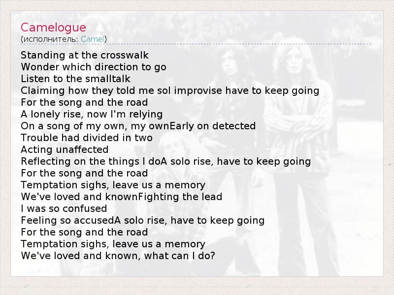 А как ты думаешь, о чем песня "Camelogue" ?