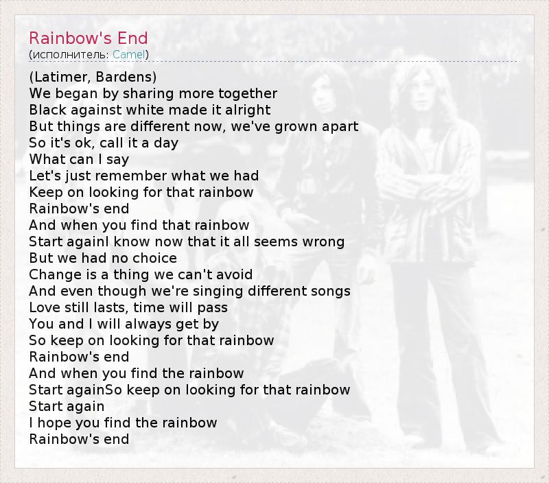 А как ты думаешь, о чем песня "Rainbow's End" ?