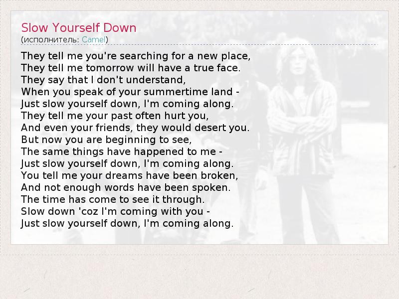 А как ты думаешь, о чем песня "Slow Yourself Down" ?