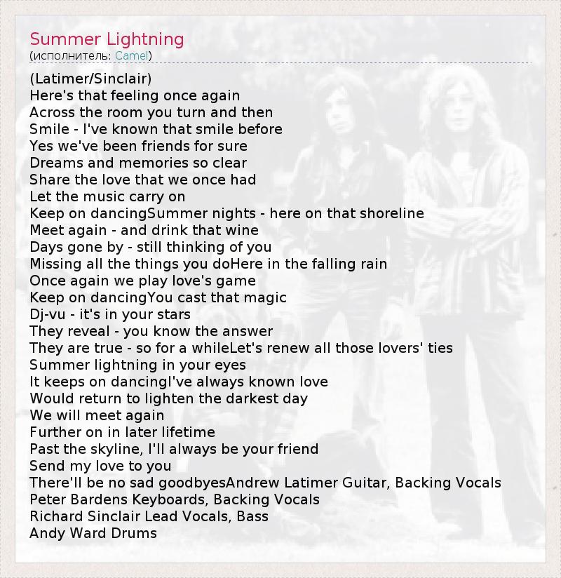 А как ты думаешь, о чем песня "Summer Lightning" ?