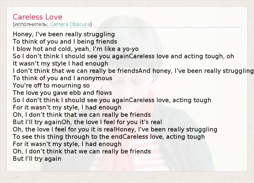 I don't think that we can really be friendsAnd honey, I've been really struggling