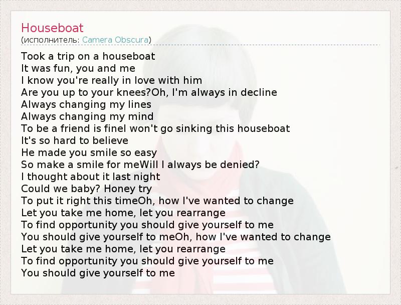 А как ты думаешь, о чем песня "Houseboat" ?