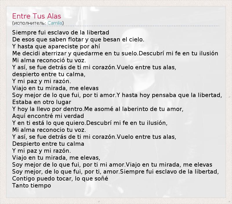 А как ты думаешь, о чем песня "Entre Tus Alas" ?