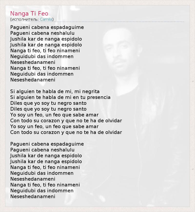 А как ты думаешь, о чем песня "Nanga Ti Feo" ?