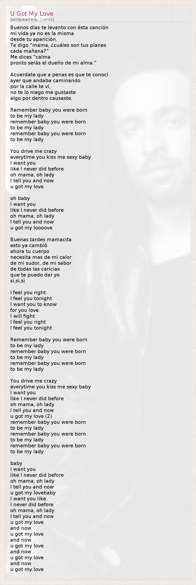 А как ты думаешь, о чем песня "U Got My Love" ?