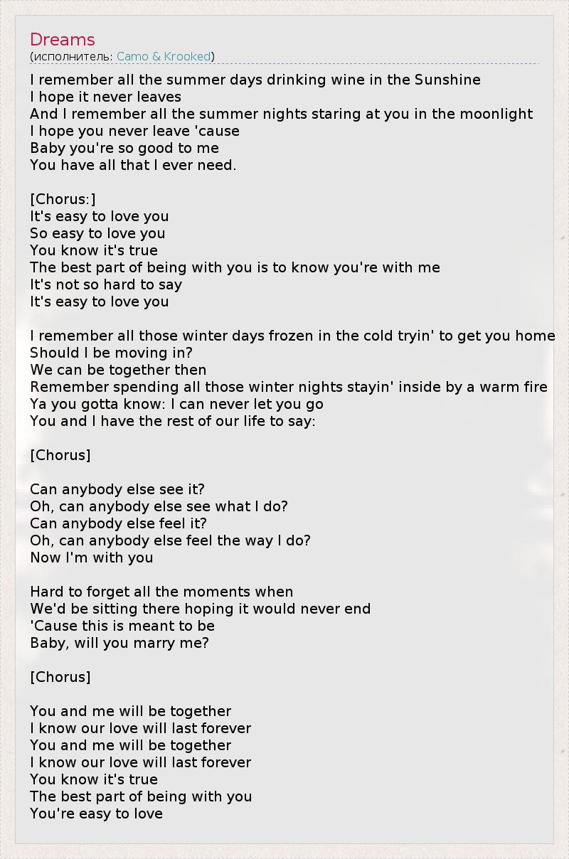 А как ты думаешь, о чем песня "Dreams" ?