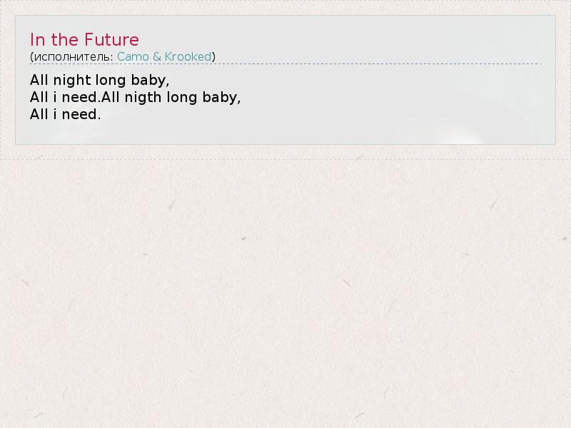 Это интересно:Когда одни из ярчайших drum’n’bass талантов (по мнению Grooverider) Reinhard Rietsch aka Camo и подающий большие надежды продюсер Markus Wagner aka Krooked, оба занявшиеся написанием музыки в 2002-м, объединились спустя 5 лет для совместной работы, никто не мог представить, какие последствия будет иметь их сотрудничество для сцены. С тех пор они создали и выпустили несколько мощнейших хитов, когда-либо появлявшихся в d’n’b.... продолжение