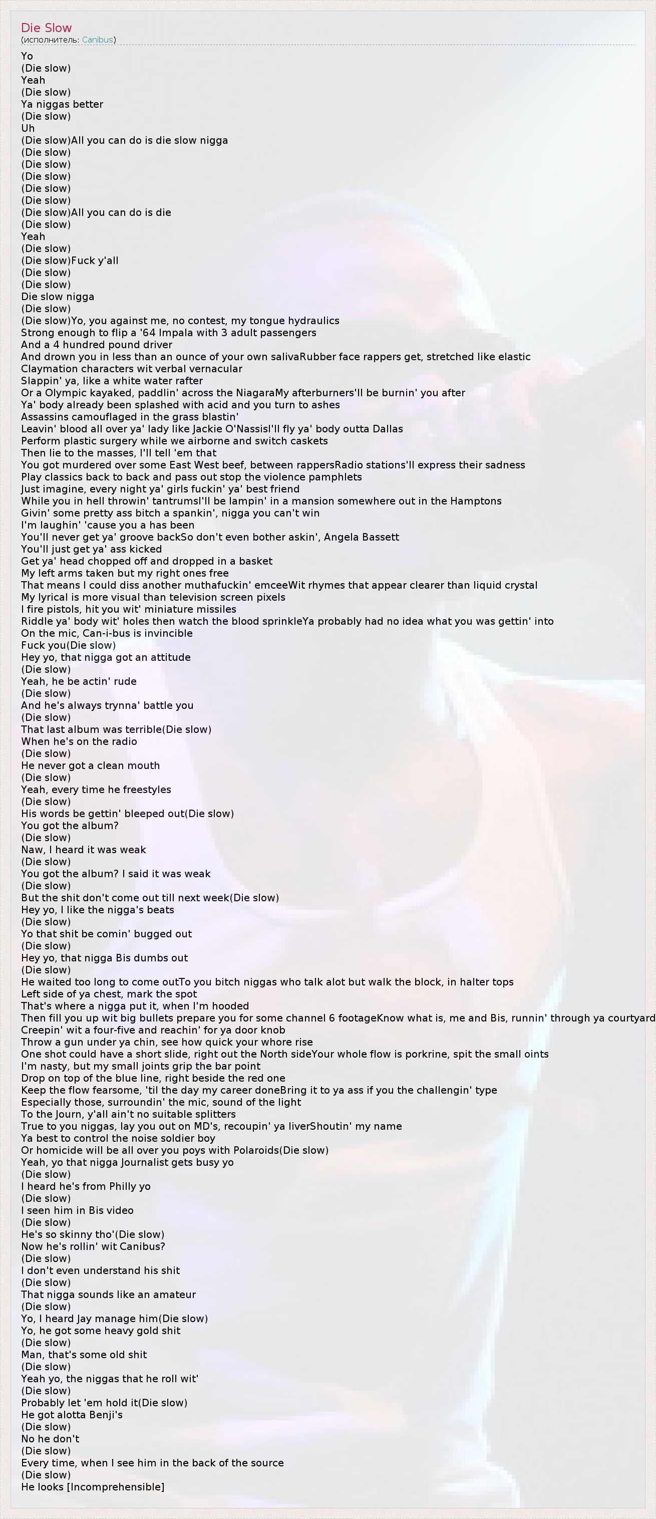 His words be gettin' bleeped out(Die slow)
