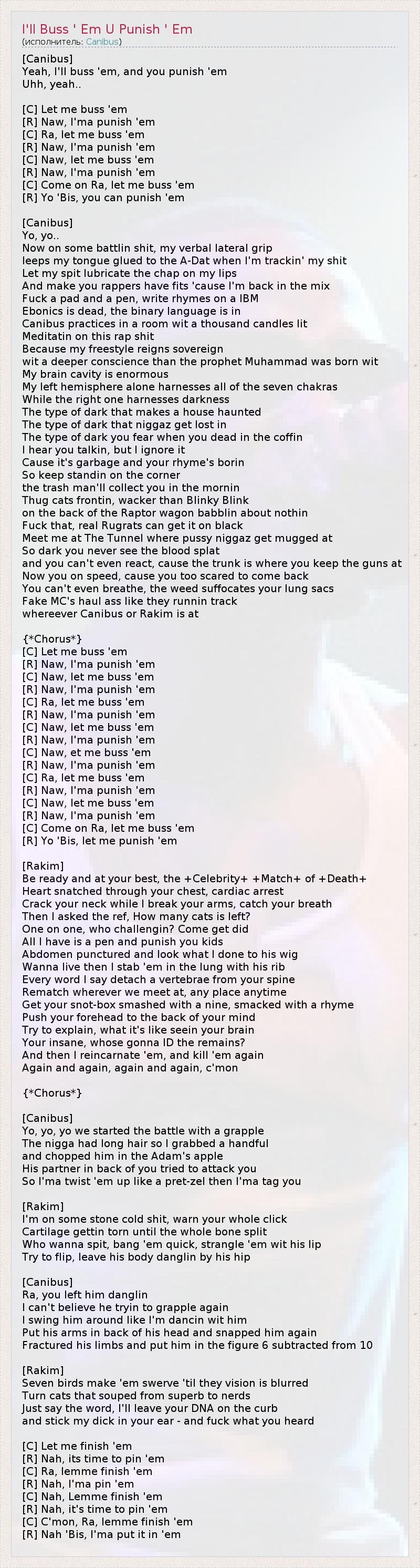 А как ты думаешь, о чем песня "I'll Buss ' Em U Punish ' Em" ?