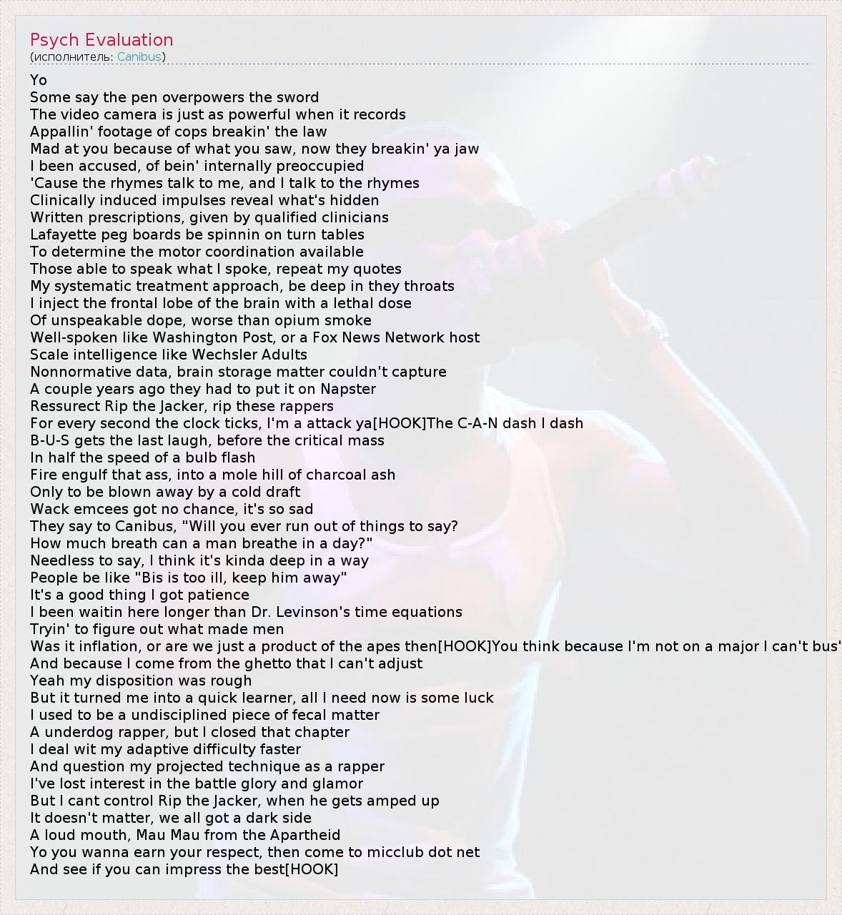 А как ты думаешь, о чем песня "Psych Evaluation" ?