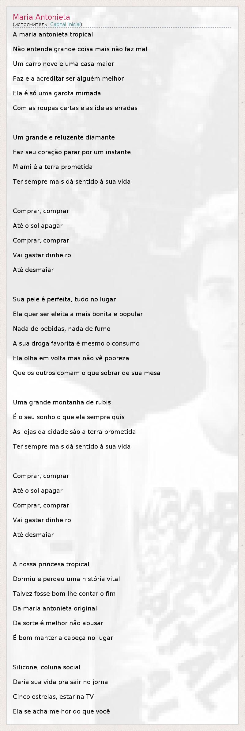 А как ты думаешь, о чем песня "Maria Antonieta" ?