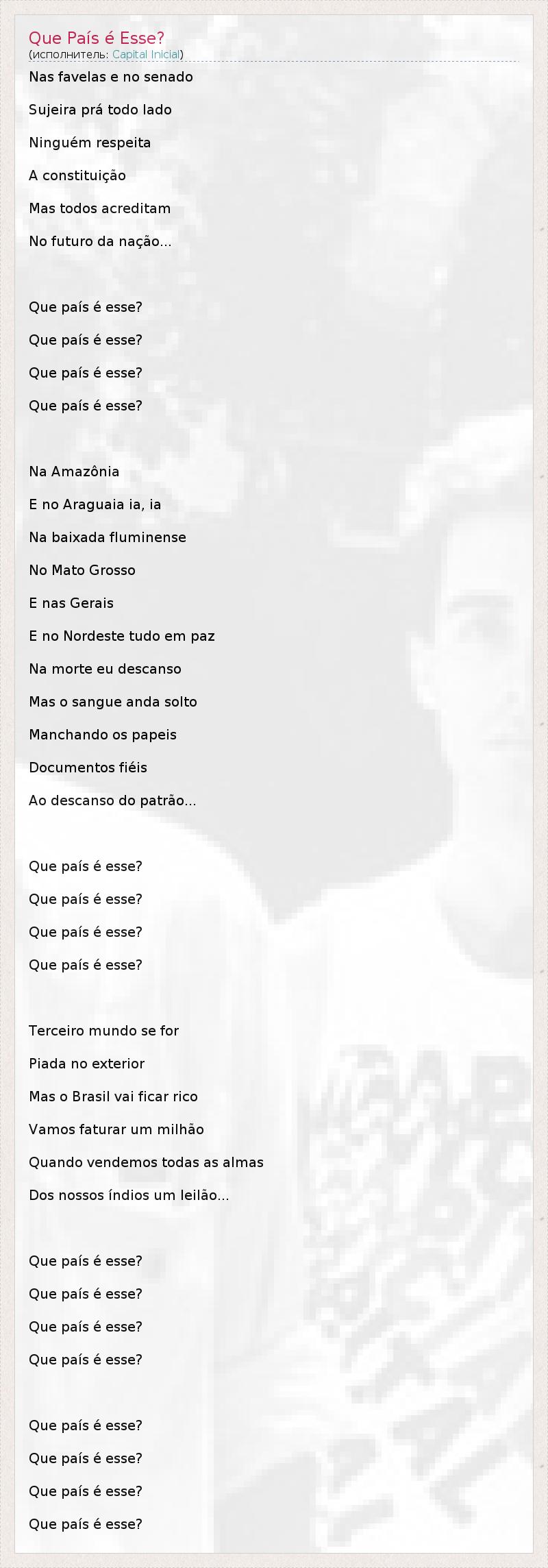 А как ты думаешь, о чем песня "Que País é Esse?" ?