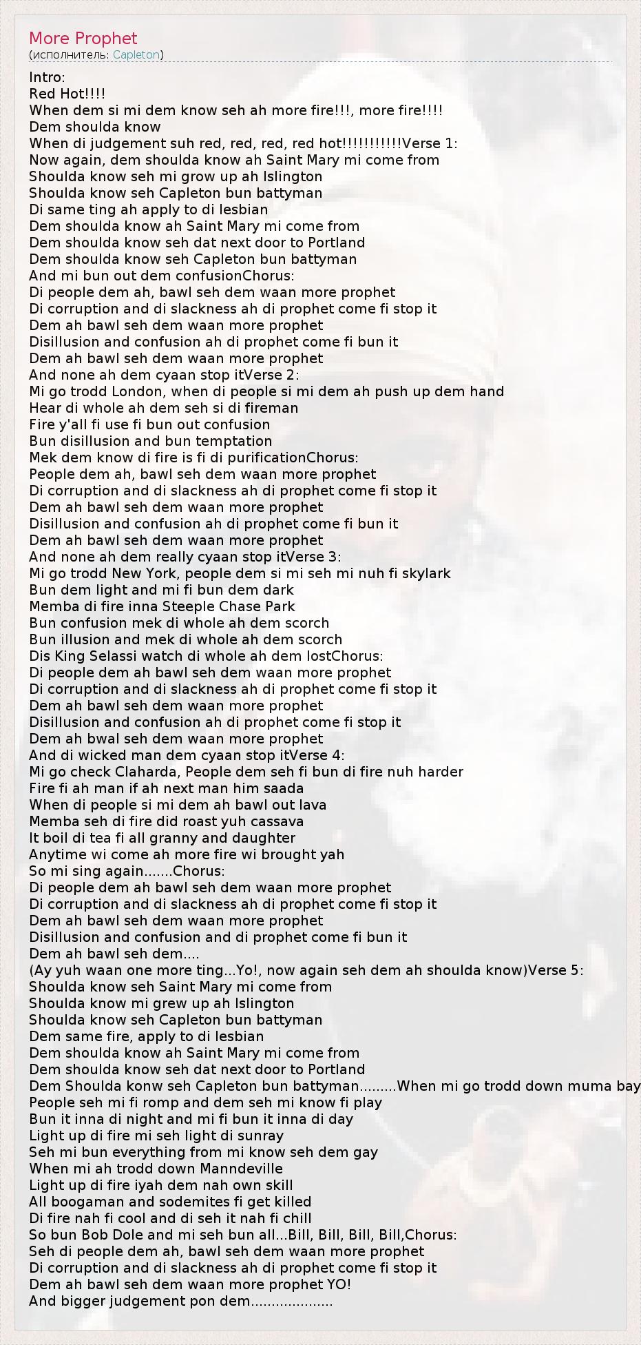 Dem Shoulda konw seh Capleton bun battyman.........When mi go trodd down muma bay