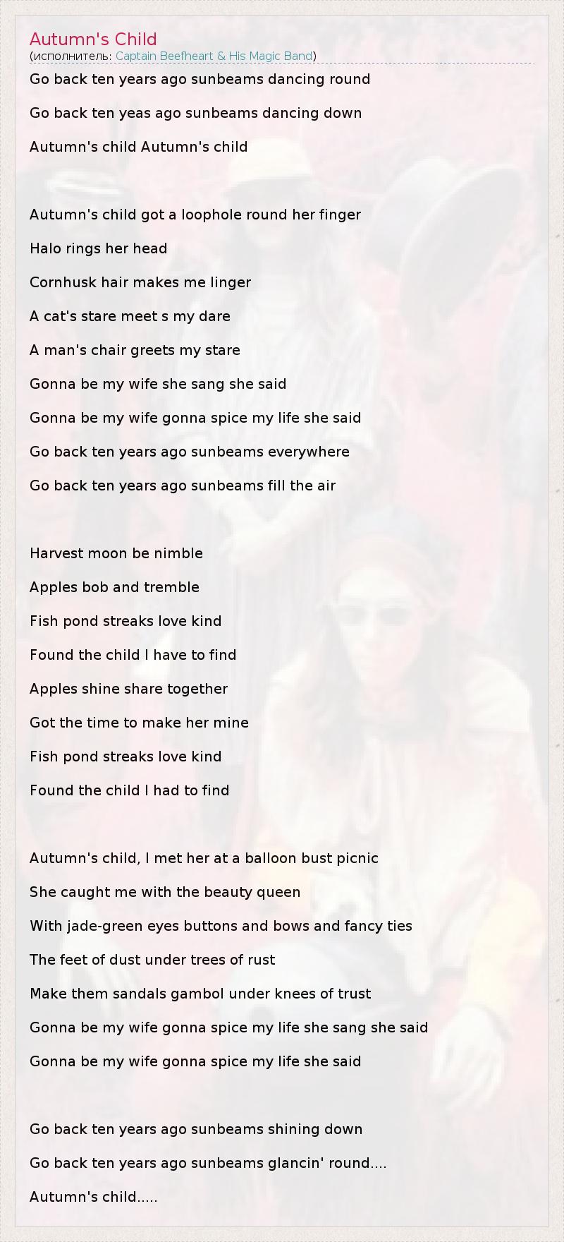 А как ты думаешь, о чем песня "Autumn's Child" ?