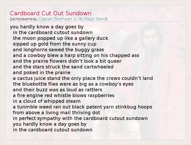А как ты думаешь, о чем песня "Cardboard Cut Out Sundown" ?