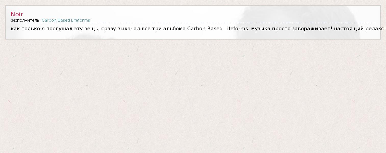 как только я послушал эту вещь, сразу выкачал все три альбома Carbon Based Lifeforms. музыка просто завораживает! настоящий релакс!