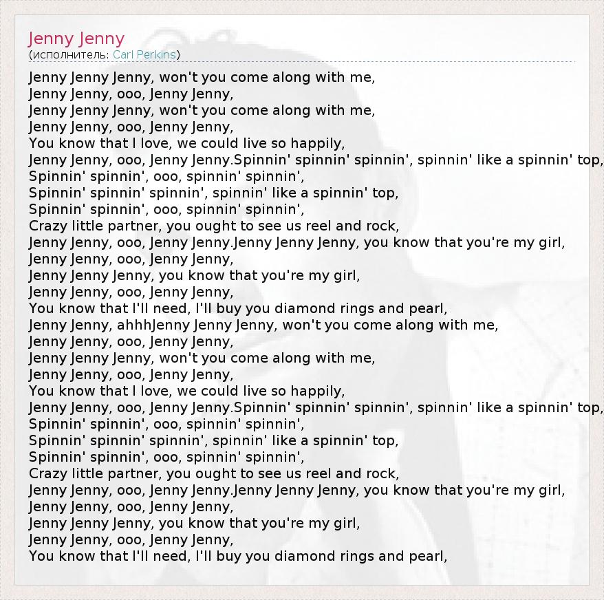А как ты думаешь, о чем песня "Jenny Jenny" ?