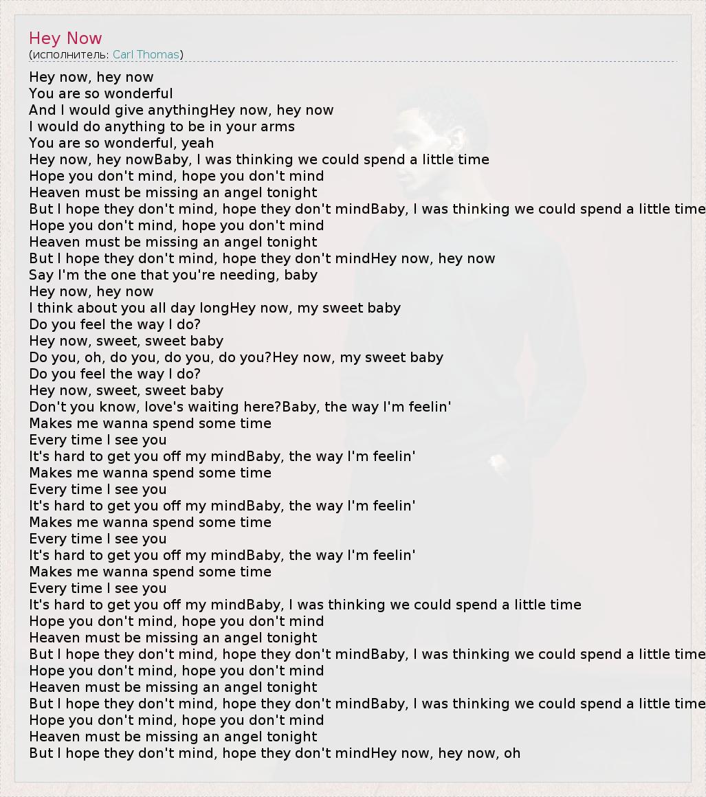 Hey now, hey nowBaby, I was thinking we could spend a little time