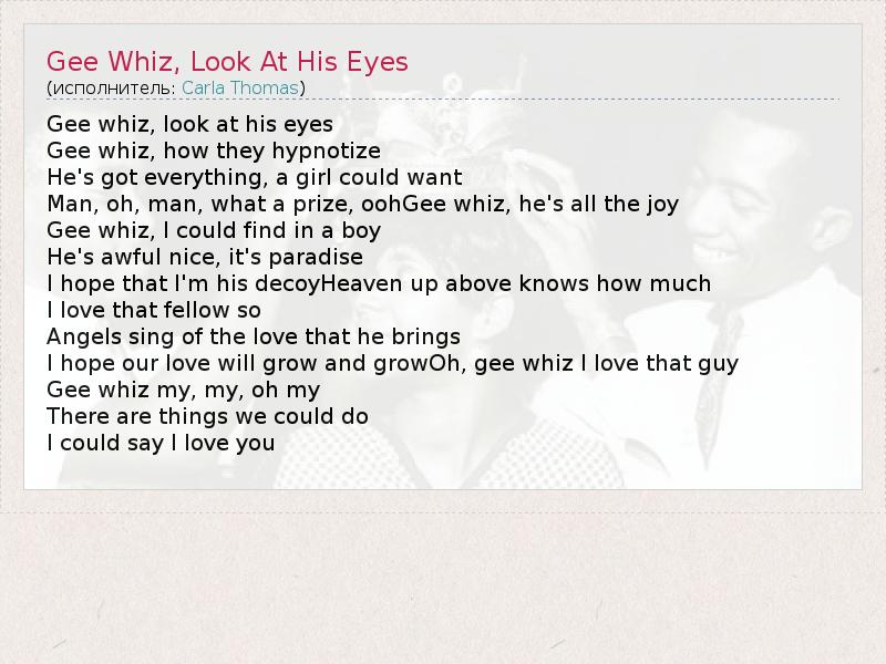 А как ты думаешь, о чем песня "Gee Whiz, Look At His Eyes" ?