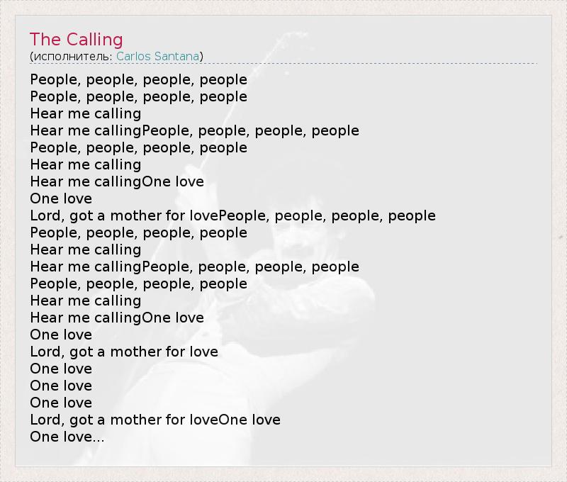 А как ты думаешь, о чем песня "The Calling" ?
