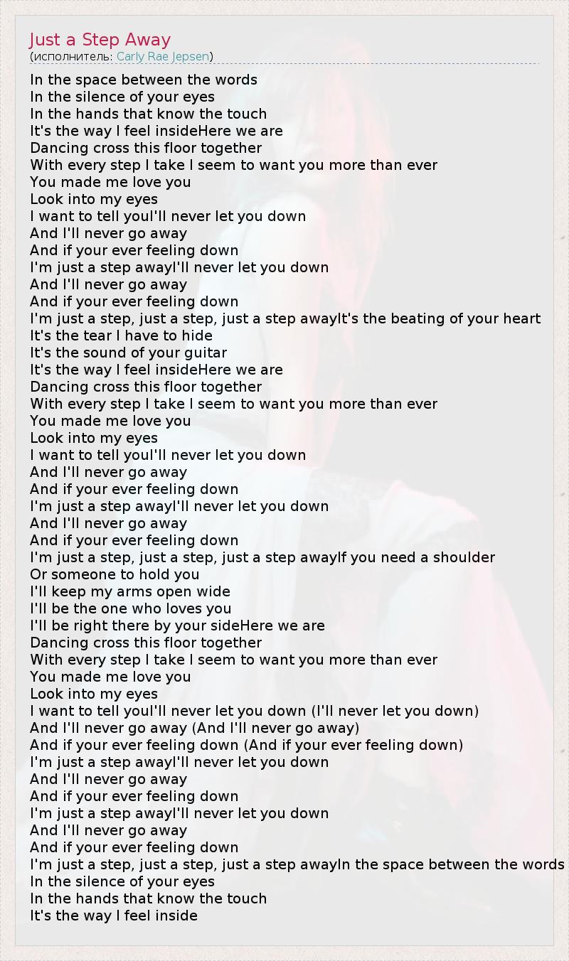 А как ты думаешь, о чем песня "Just a Step Away" ?