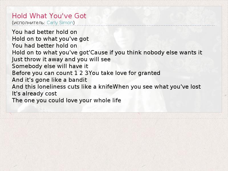 А как ты думаешь, о чем песня "Hold What You've Got" ?
