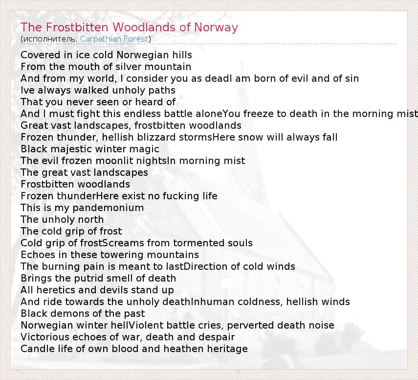 А как ты думаешь, о чем песня "The Frostbitten Woodlands of Norway" ?