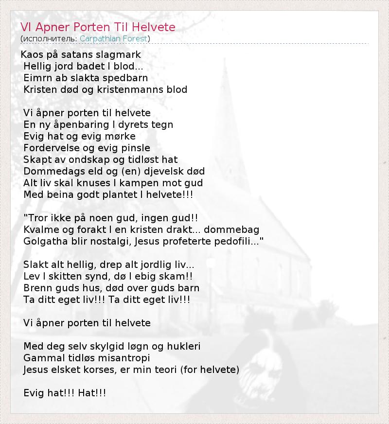 А как ты думаешь, о чем песня "VI Apner Porten Til Helvete" ?