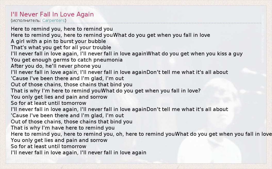 А как ты думаешь, о чем песня "I'll Never Fall In Love Again" ?