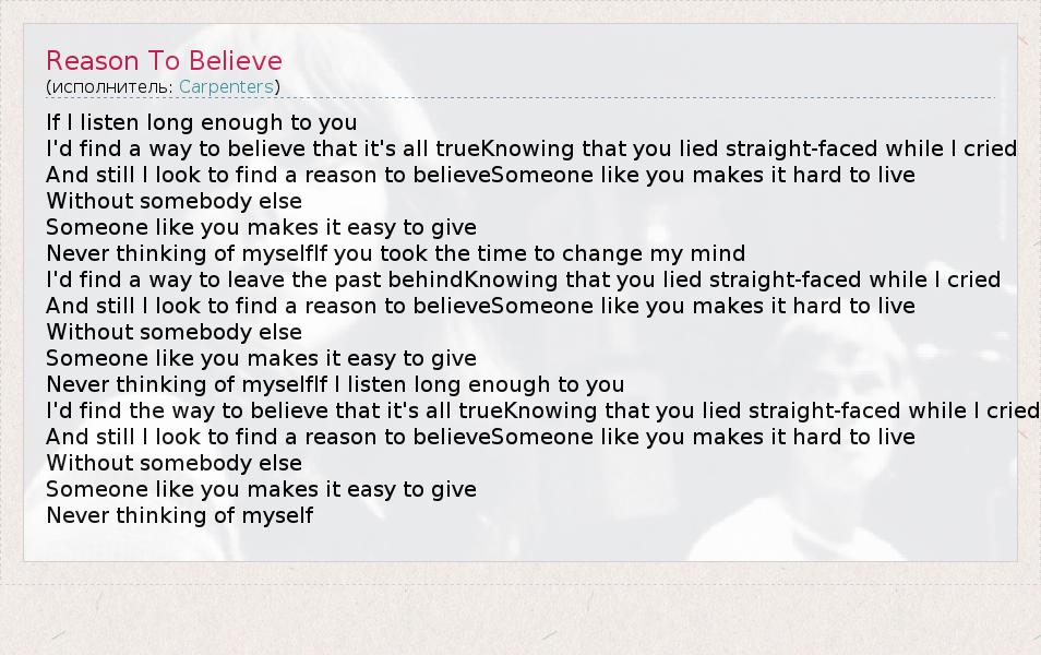 А как ты думаешь, о чем песня "Reason To Believe" ?