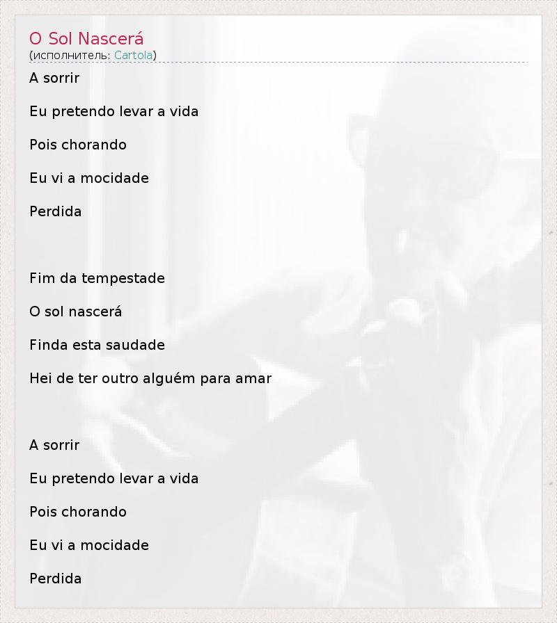 А как ты думаешь, о чем песня "O Sol Nascerá" ?