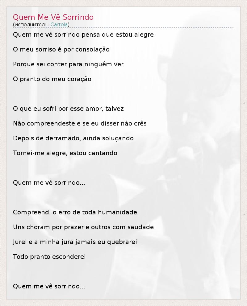 ГлавнаяИсполнителиCartolaQuem Me Vê Sorrindo